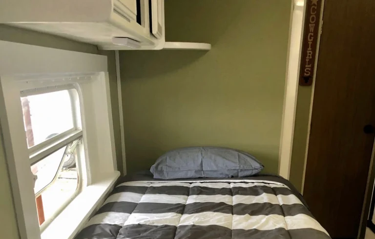 Jill’s camper rental unit has the largest walk-in shower of all of our camper rentals. Dual AC units within will ensure that you’ll stay nice and cool during the West Texas warmer time of year.