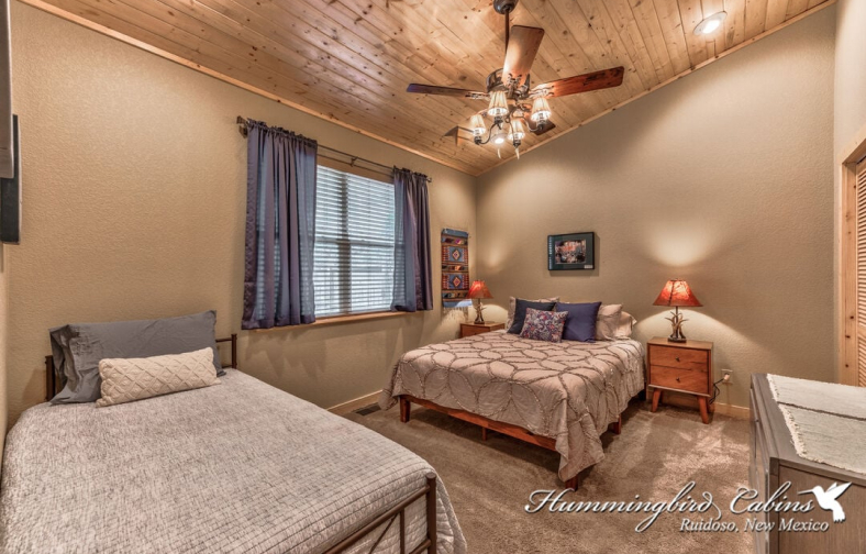 This 1,547 sq. ft., one-level retreat features three bedrooms, two baths, and a cozy gas fireplace. The recently remodeled kitchen boasts granite countertops, stainless steel appliances, and LED lighting for evening ambiance. Outside, enjoy a gated front deck, a fenced backyard with a hot tub, and a serene mountain setting. Central air, heating, and a water filtration system ensure modern comfort. Located in Ruidoso, this dog-friendly cabin is the perfect blend of rustic charm and modern convenience.